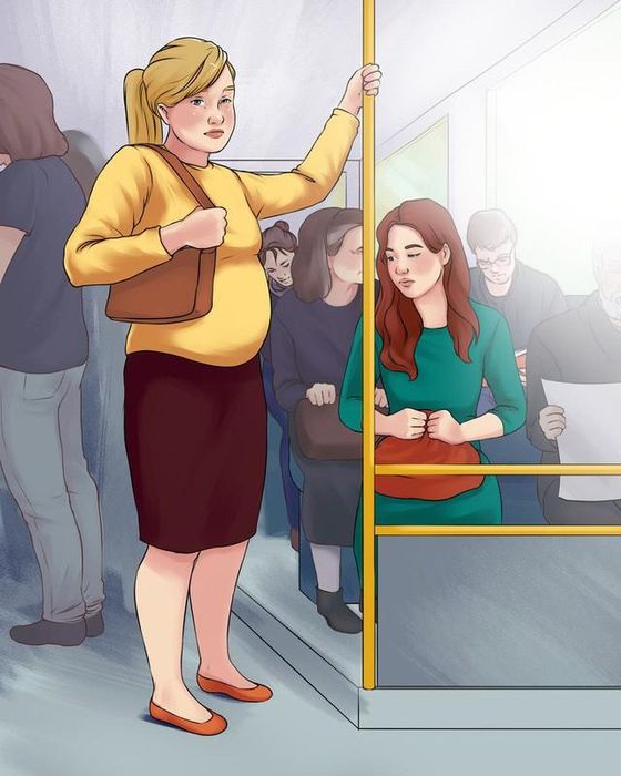 Offering a seat to a pregnant woman is an important rule. However, it can be tricky to differentiate between a pregnant woman and an overweight woman. Some signs to help you distinguish are: