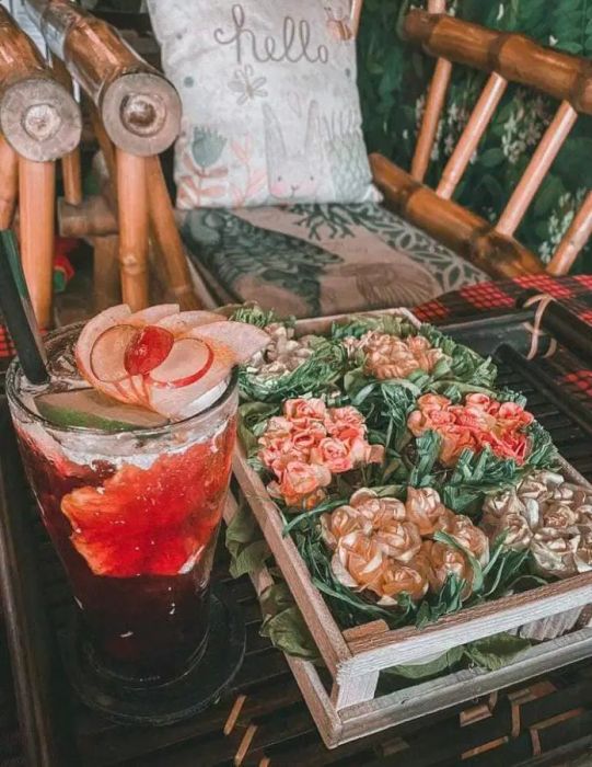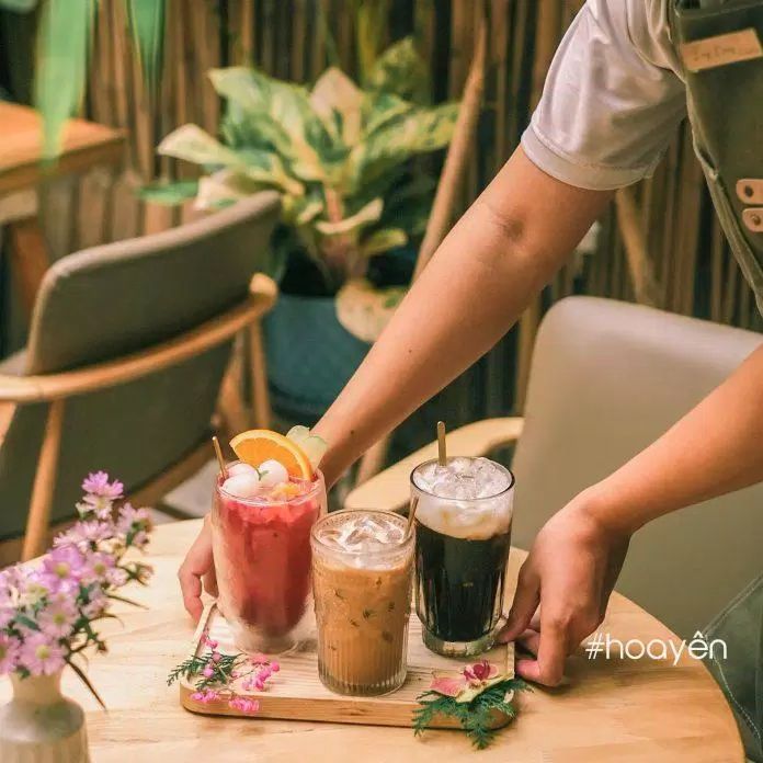 Yen Blossom Drink Shop - beauty resides in purity. The shop is immersed in the green color of plants, bamboo, interspersed with a hint of pale yellow from wooden materials, creating a tranquil space amidst the city. When visiting the shop, various teas are often the top choice of customers. The gentle fragrance wafts through the quiet space, giving customers a feeling of relaxation and gentleness. Not only tea, but other drinks and food here are also meticulously prepared in terms of appearance and taste. Yen Blossom Drink Shop will surely bring you moments of comfortable work and study.