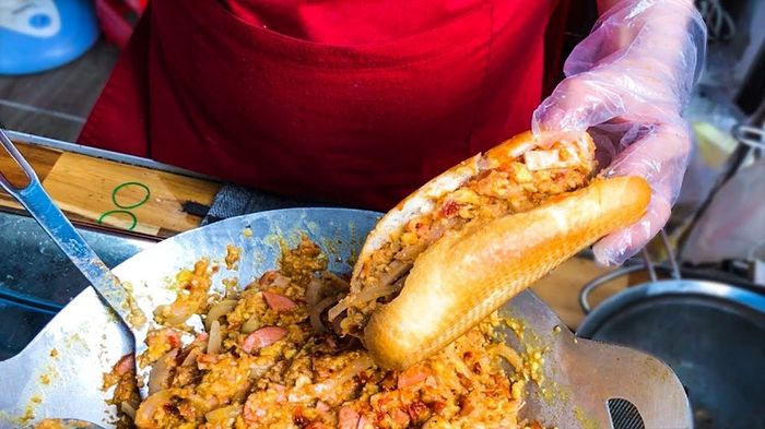 As one of the most talked-about names recently, People's Ancestral Baguette has gained immense popularity across various social media platforms such as Facebook, Instagram, YouTube, due to the buzz surrounding this late-night food. If you happen to visit People's Ancestral Baguette on Tran Nhat Duat Street during your Hanoi travel, you'll undoubtedly be impressed by the food, prices, service, and the operating hours. The baguette here is reasonably priced, offering a variety of ingredients for you to customize your own sandwich.