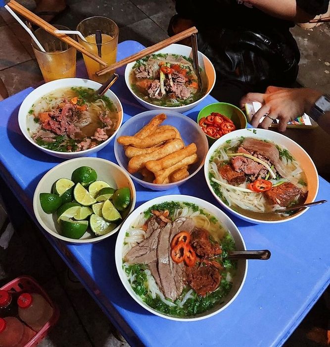 If you're searching for a nutrient-rich late-night eatery in Hanoi, look no further than Chicken Noodle Soup on Hang Bo Street. Situated on the sidewalk, this eatery is easily found with a stroll through the Old Quarter. Many visitors initially stop by to give it a try, only to become loyal patrons of this enticing establishment on Hang Bo. The chicken noodle soup here features firm and chewy noodles paired with large, well-seasoned chicken pieces. This dish is also suitable for those feeling under the weather, as the herbal flavors in the soup are nutritious and health-boosting.