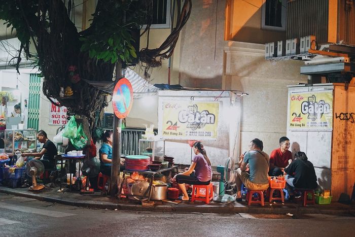 Pho Cart on Hang Chieu Street is a well-known spot for night owls in Hanoi. Established on the ancient streets, this unique pho joint exclusively opens at night. Despite its simple setting with basic plastic chairs, it consistently attracts a bustling crowd eager to savor its special pho dish.