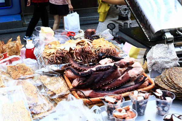 A fairly common dish in Asian countries, and Seoul is no exception. This dish is relatively simple to prepare, where squid is marinated with spices and grilled whole. When served, vendors often cut it into small pieces for you, typically accompanied by various sauces and chili paste.