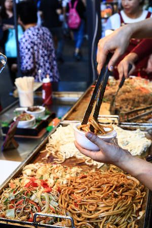 Bulgogi, a famous grilled beef dish in Korea, is beloved not only by tourists but also by the majority of South Koreans. Bulgogi is often wrapped with perilla leaves and sesame leaves when eaten. Moreover, Bulgogi stalls often sell Japchae alongside.