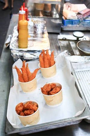 Crispy coated shrimp is a favorite among many tourists visiting South Korea because of the crispy texture of the outer coating and the delicious sweet taste of the shrimp inside.