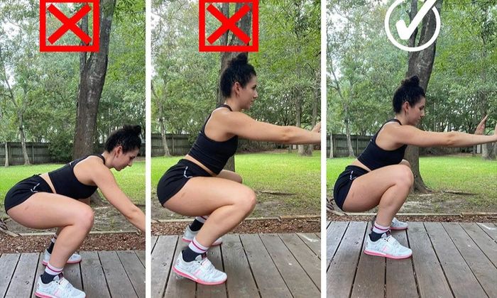 Step 2: Lower your hips vertically, keeping your back straight, and go as deep as possible without letting your knees go beyond your toes.
