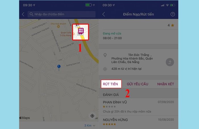 Choose the top-up/withdrawal point and then press Withdrawal (Source: Internet)Step 4: You should enter the amount (50,000 – 5,000,000 VND) and the phone number of the Top-up/Withdrawal Point > Select the “Withdrawal” button.