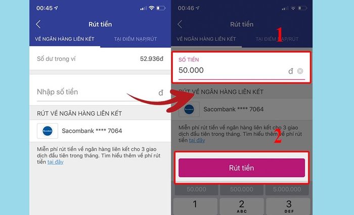 - Similar to withdrawing money at ATMs, you can withdraw from 50,000 to 5,000,000 VND per transaction.