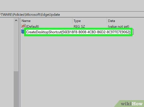 - For Edge Dev, specify the DWord as 'CreateDesktopShortcut{0D50BFEC-CD6A-4F9A-964C-C7416E3ACB10}'.