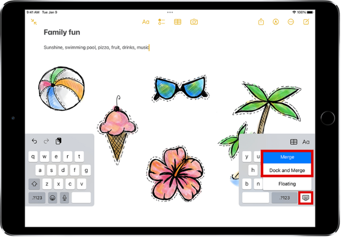 Step 2: Long-press the keyboard icon at the bottom right of the virtual keyboard, choose Merge, and the keyboard will seamlessly return to its original state. Alternatively, you can use Merge and Dock to both reattach the keyboard and place it back at the default bottom position on the screen.