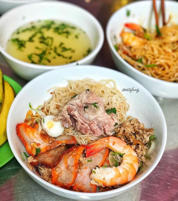 Unlike the usual pork bone noodle soup, assorted pork bone noodle soup includes various ingredients like marrow bones, trotters, seafood, pork heart, beef balls, quail eggs... A bowl of noodle soup with assorted toppings provides ample vitamins for the whole family.
