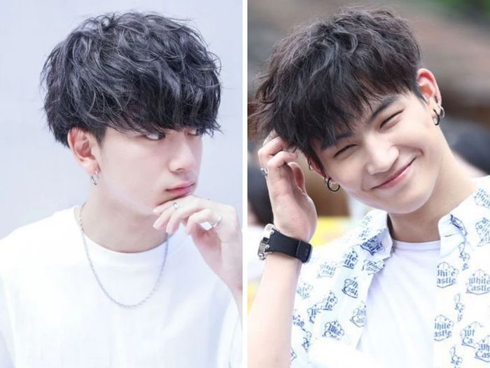 A hairstyle for round-faced men favored by Korean idols - the two-sided bangs. This hairstyle suits many faces, especially round-faced men. With its ability to conceal imperfections and enhance the modern, handsome look for men, it's currently the most popular hairstyle among guys.