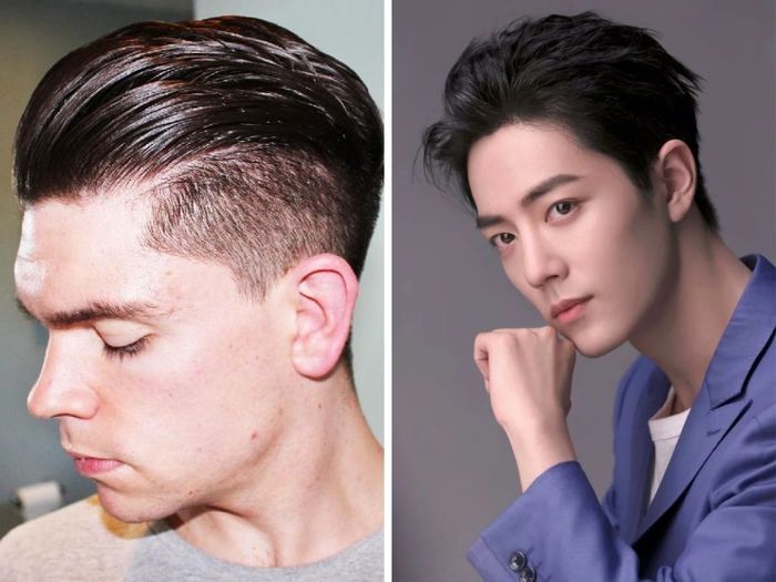 Diagonal slicked hair for men with round faces and high foreheads is trendy (Source: Internet)6. Slicked Backwards – Beautiful Hairstyle for Round-Faced Men