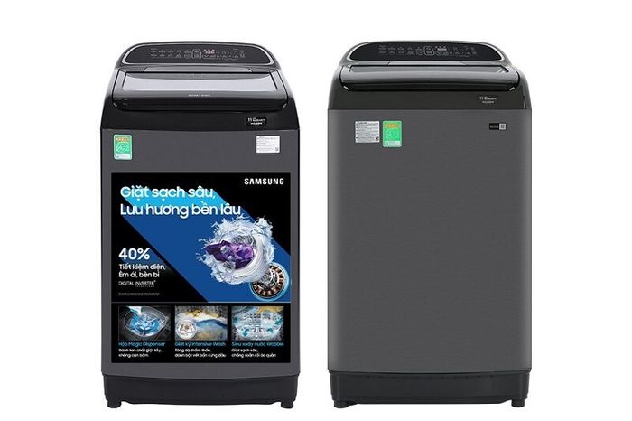 Priced around 4,000,000 VND, this top-load Samsung 10kg washing machine features a compact design for easy installation and operation. It combines a direct drive motor with modern Digital Inverter technology for maximum electricity and water savings while ensuring clothes are thoroughly cleaned. Additionally, its inverter technology enables quiet operation, and it includes Intensive Wash for stubborn stains and Wobble technology to minimize tangling and protect clothes.