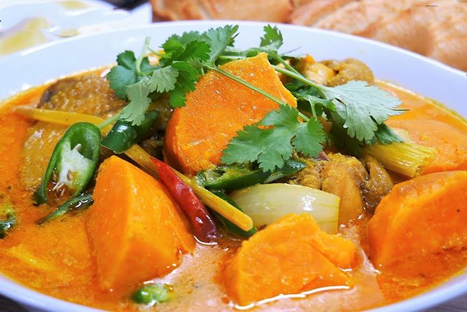 Duck curry boasts an enticing golden color.