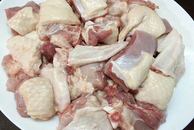 - Clean the duck meat thoroughly, eliminate any unpleasant odor with white wine and crushed ginger. Rinse it off, drain excess water, and cut into bite-sized pieces.