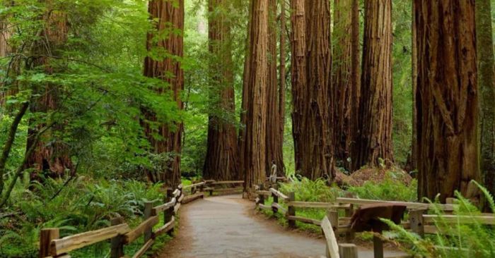 Perhaps people from all around the world come to Muir Woods to express their reverence for nature. The age of the redwood trees here ranges from 400 to 800 years, reaching heights of over 76 meters. The forest is home to various species including redwoods, red oaks, California bigleaf maples, tanoaks, and Douglas fir trees. Wildlife includes Coho salmon, Pacific-slope flycatchers, woodpeckers, hawks, deer, chipmunks, minks, river otters, and squirrels.