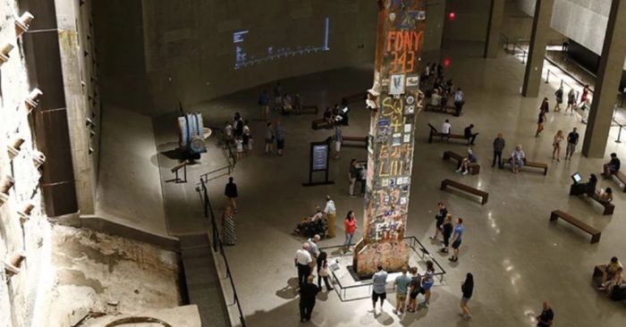 The twin towers of the World Trade Center, which once dominated the Manhattan skyline, were destroyed in the terrorist attacks on September 11, 2001, resulting in a tragic loss of nearly 3000 lives. Where the two towers of the World Trade Center once stood are now two square-shaped pools, each covering 2.5 acres. Surrounding the pools are bronze panels inscribed with the names of all those who perished in the attacks.