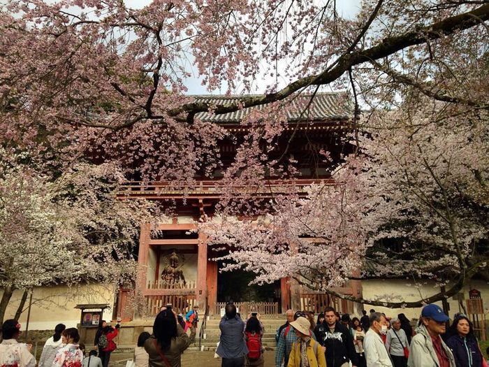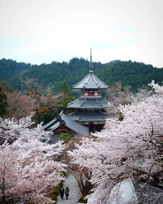 Visitors can both admire the cherry blossoms and explore this venerable temple. @l.lin26