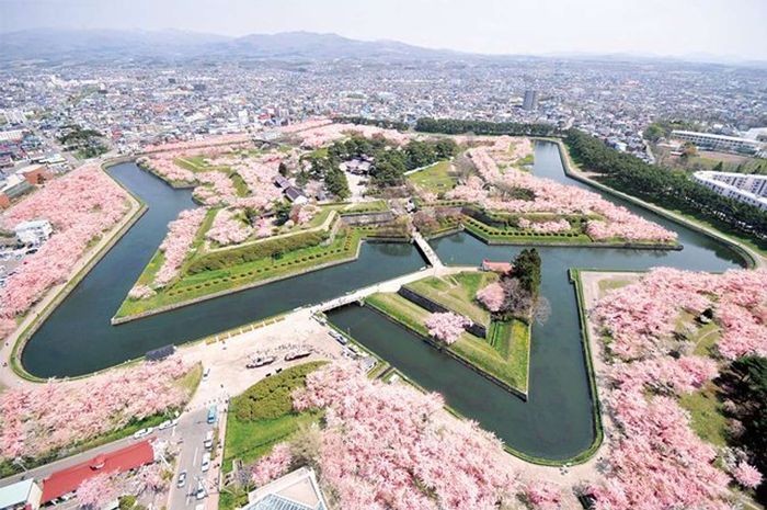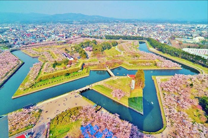 Located in Hakodate city in southern Hokkaido, Goryokahu Tower is a fantastic spot to admire the blooming cherry blossoms. From atop the tower, you'll have a panoramic view of the unique star-shaped architecture of this park. With over 1,000 cherry trees blooming each season, it becomes even more dazzling.
