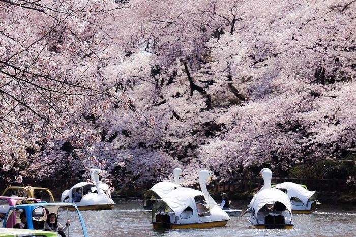 This is one of Tokyo's oldest parks, built during the Edo period. The park features a large pond, so you can rent a boat and row out into the middle of the lake to admire the vibrant cherry blossoms.