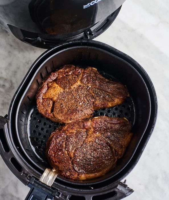 According to chefs, choosing sirloin, top sirloin, or shoulder tenderloin is essential for a delicious beefsteak. These cuts are relatively lean but have marbled layers of fat that prevent the meat from drying out. When making air-fried beefsteak, the meat will be significantly more tender.