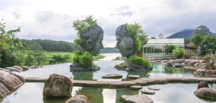 Notably, the infinity pool area is becoming the hottest 'Instagrammable' spot here, with a lake nestled on the hillside and two remarkably impressive characters sculpted on the water's surface.