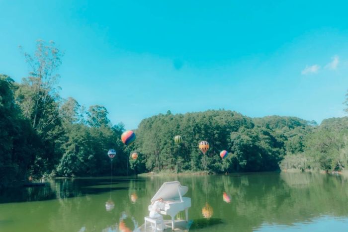 Next to Hiep Khach Lau, Da Lat also possesses a picturesque spot with a name as enchanting as a martial arts novel - Lac Tien Gioi. Don't let the name deceive you because the impression that Lac Tien Gioi brings is essentially very Western. The #teamKlook's favorite check-in spot is the piano in the middle of the lake, right next to a series of small, colorful hot air balloons floating above the lake. Lac Tien Gioi is nestled in the lush green pine forest; the air here is cool and refreshing all year round. Simply come here to admire the scenery and enjoy a hot tea, and you'll have enough 'vitamin chill' for a self-sufficient trip to Da Lat.