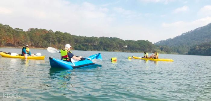 Visiting the Tuyen Lam Lake Tourist Area, besides enjoying sightseeing, you can also participate in kayaking and canoeing. Along the scenic route, you can stop at beautiful spots to take photos with the reed fields or explore strawberry gardens and maple forests.
