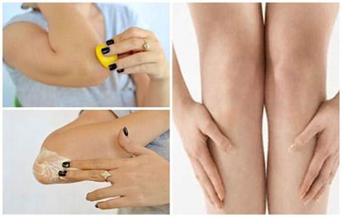 Due to its rich vitamin C content and high acidity, lemon can effectively diminish dark spots and lighten the skin in the knee and elbow areas.