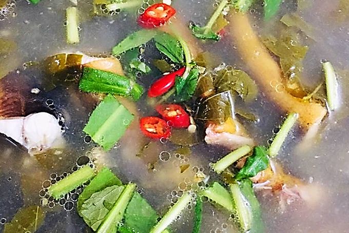 To make this dish, instead of tamarind, prepare a handful of giang leaves.