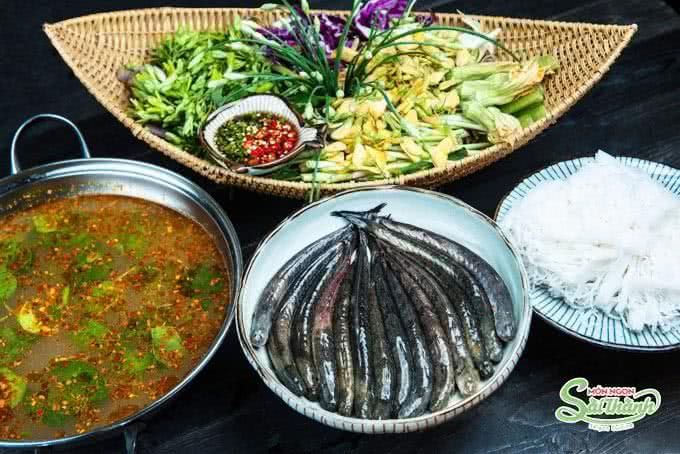 While Hanoi is known for young rice, Saigon for fruits, and various teas, the Mekong Delta often evokes memories of a culturally rich region with vast rivers and characteristic dishes such as snakehead fish hotpot. The main ingredients include snakehead fish and various types of blossoms and fresh greens. If you encounter this dish for the first time, the array of blossoms like crazyweed, so-duoc flower, curly parsley, bitter melon, sesame leaves, pumpkin flower, and water lily might overwhelm you. Alongside the mixed plate of greens, a fresh bowl of snakehead fish is added to the hot pot, enhancing the depth of flavor when dipped into the simmering broth. Snakehead fish hotpot captivates diners with its vibrant colors, tantalizing aroma, and the refreshing taste of the broth.