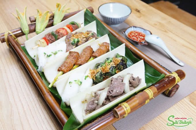 Southern Grilled Beef encompasses five dishes crafted from tender beef, richly infused with the flavors of the South: Bamboo-tube grilled beef, skewered beef, betel leaf-wrapped beef rolls, lemongrass-stalk wrapped beef rolls, and grilled beef with rice vermicelli. The main ingredient is soft beef marinated with distinctive Southern spices such as green pepper, peppercorn, chili, rice vermicelli, sour kiwi... then quickly grilled over moderate charcoal heat to retain its moisture. The standout spice in Southern Grilled Beef is pepper; not only spicy but also sweet, enhancing the richness and sweetness of the dish.