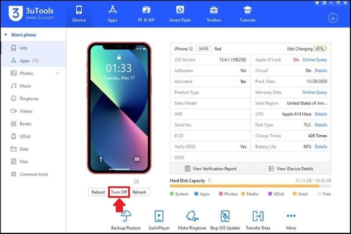 Power off iPhone using 3uTools software (Source: Internet)How to power off iPhone using Hard Reset option