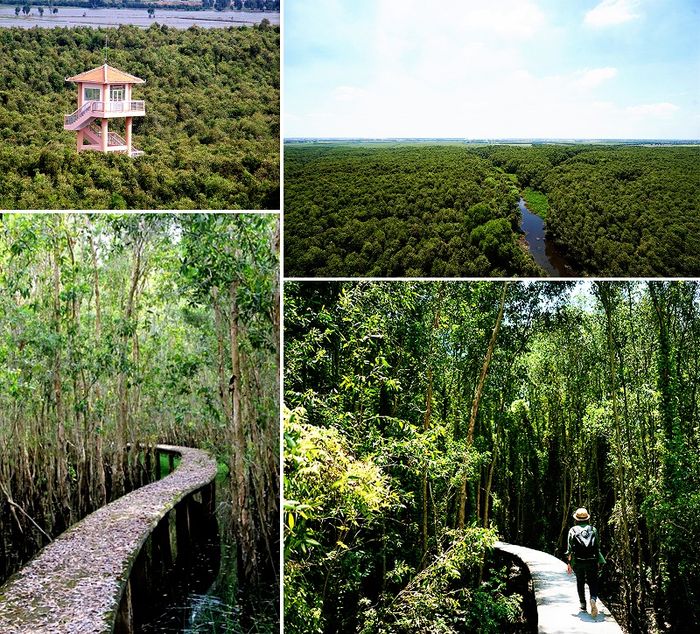 Here, you can rent a boat or canoe to navigate through the mangrove forest or walk on the longest concrete road through mangrove forests in Vietnam. The 38-meter-high tower is the highlight of the floating village. From the top of the tower, tourists have the opportunity to take in the panoramic view of the floating village, which is vast and refreshing, something rarely seen in the city.
