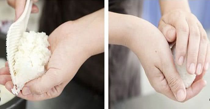 You can use food wrap to cover the outside of the rice balls (after the rice has cooled) as a very convenient way to maintain hygiene and make eating much easier.
