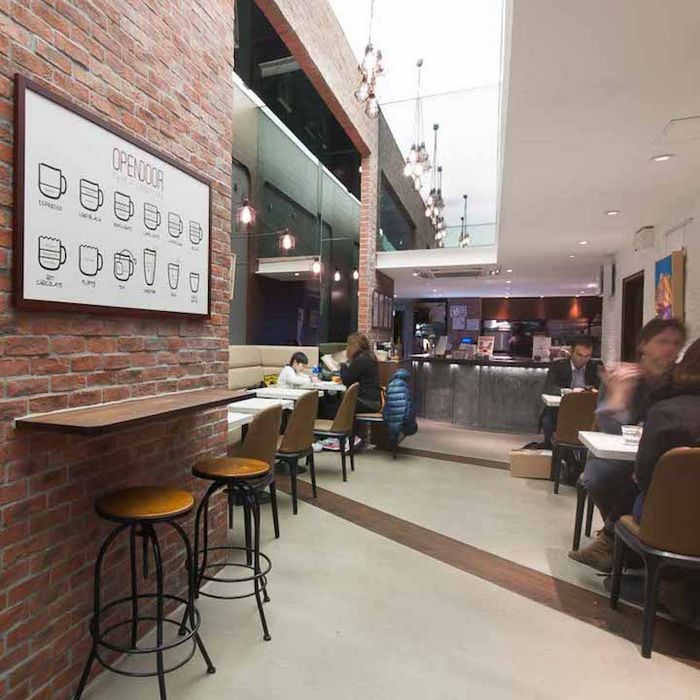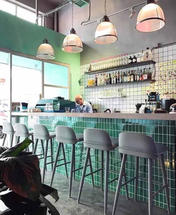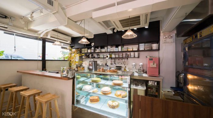 The cafe is quite cozy, situated on a sloping street with an overall white and gray industrial style. Despite its small size, it offers a diverse range of homemade food, drinks, ice cream, and pastries.