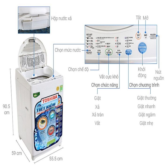 The uniqueness of this washing machine lies in its optimal cleaning effectiveness thanks to the Magic Dispenser detergent dissolving box design. Unlike conventional washing machines with detergent/water containers, this design includes a rotating fan blade. When combined with strong water jets, it dissolves detergent before being carried into the washing drum and permeating into the clothes.