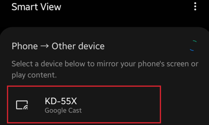 Step 3: The Smart View feature interface opens up. On the interface, you will see the devices that can be connected to the phone. Choose the name of the device you want to connect to.