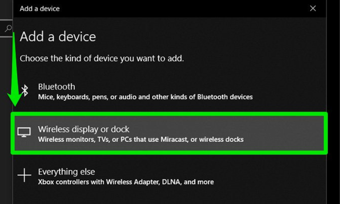 Feature Add Bluetooth or other device Win 10 (Source: Internet)Step 5: Choose Wireless display or dock.