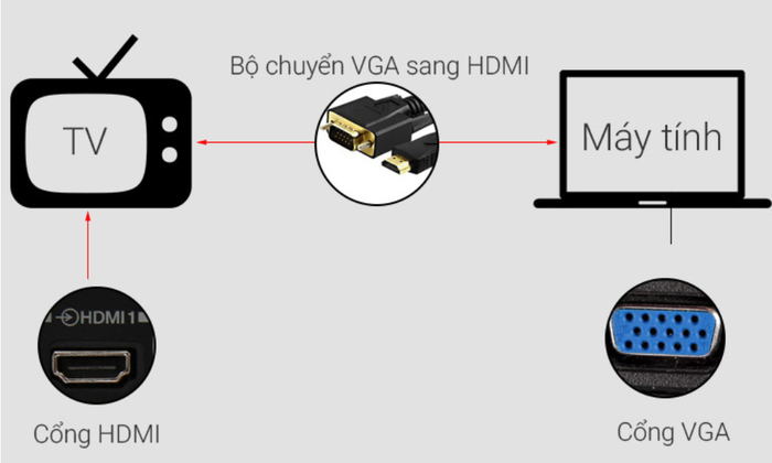 - You prepare an HDMI to VGA converter cable. This converter cable comes in various types such as: type with one end of the cable available, type with only the converter without the cable,... however, the usage of these types will be similar.