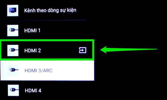 Connect the HDMI cable to the TV (Source: Internet)Step 3: On the TV, use the remote to select the input source as HDMI 2 (corresponding to the HDMI port you plugged into the TV).