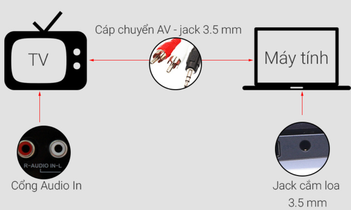 Connect the audio between the computer and the TV using an AV - 3.5 mm converter cable (Source: Internet)- Method 2: Connect via the 3.5 PC Audio jack on the TV.