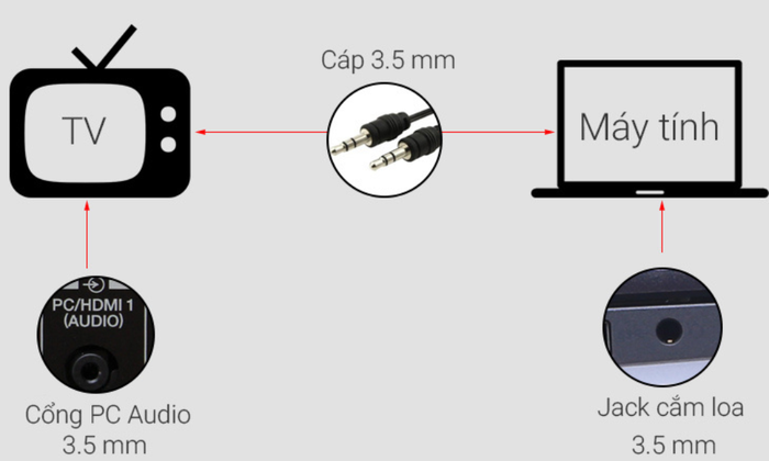 Connect audio between the computer and the TV using a 3.5 mm cable (Source: Internet)Connect the computer to the TV via USB
