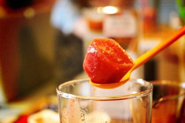 Different from the 'drinkable cup' concept, coffee and smoothie compressed tablets are inspired by the idea of enjoying smoothies in a pill form. A glass of smoothie compressed tablets consists of fruit juice - yogurt, with the rest being frozen smoothie tablets. The combination of these two elements creates a refreshing, flavorful drink.