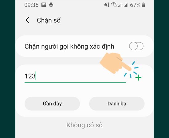 Step 5: Select the phone number to block and add it to the blocked list by tapping on the '+' symbol
