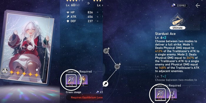 Unlike Genshin Impact, innate abilities do not automatically unlock upon character breakthroughs in Honkai: Star Rail. Instead, players must gradually unlock them through the Trace system. Meanwhile, the proficiency level can be easily upgraded to enhance its effect.
