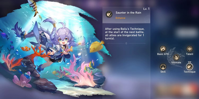 Secret Techniques are skills that can only be used outside the open world, players can use them to attack before engaging. Each character will produce their own effects when using Secret Techniques. Most characters simply attack and deal pre-battle damage, however, some characters create additional effects. For example, the main character - the Explorer, restores 15% HP for the entire team, Dan Heng increases individual attack stats, or Bailu creates a healing effect after being attacked.
