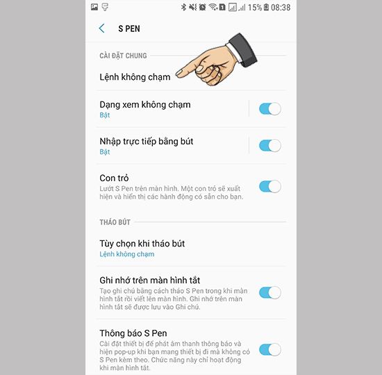 This feature enables a floating icon that can open a touchless command menu when sliding the SPen to any position on the screen.