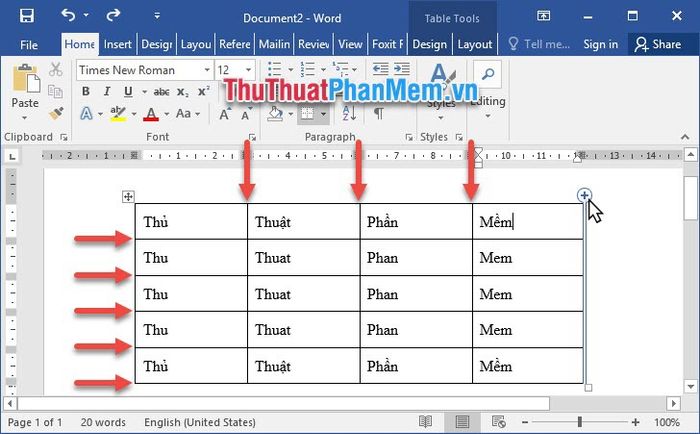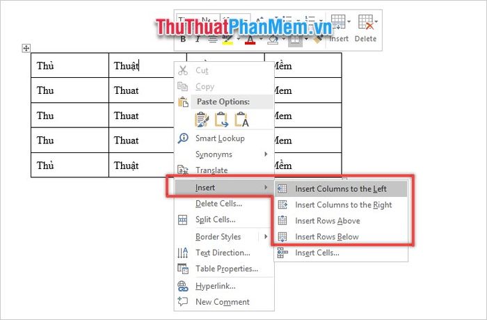1. Adding columns and rows in Word