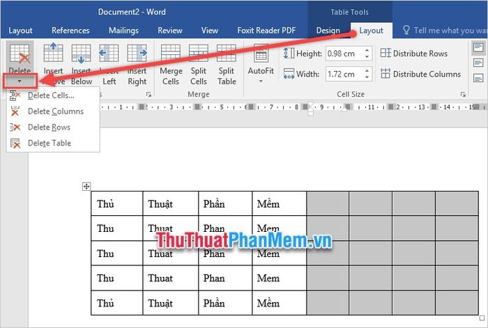 2. Deleting Columns and Rows in Word